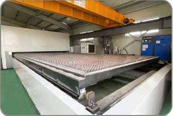 처리가 진행되는 동안 계속해서 생산할 수있는 두개의 동적 테이블이 있습니다. 작업자는 절단된 제품을 수집하고 가공을 위해 다음 자재를 적재합니다. 완전히 자동화된 로딩 - 언로딩 시스템.